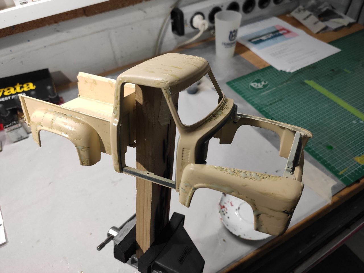 Massstab 1:18. Der hochwertig und gut lackierte Pickup sollte alt, richtig alt werden. Wir haben die Basislackierung des Wagens, Scheiben und Holzboden der Ladefläche erstellt