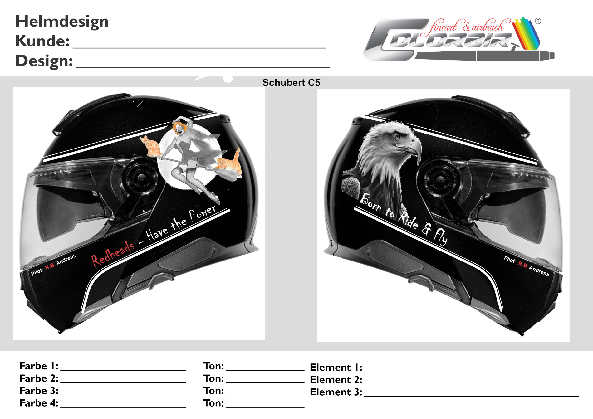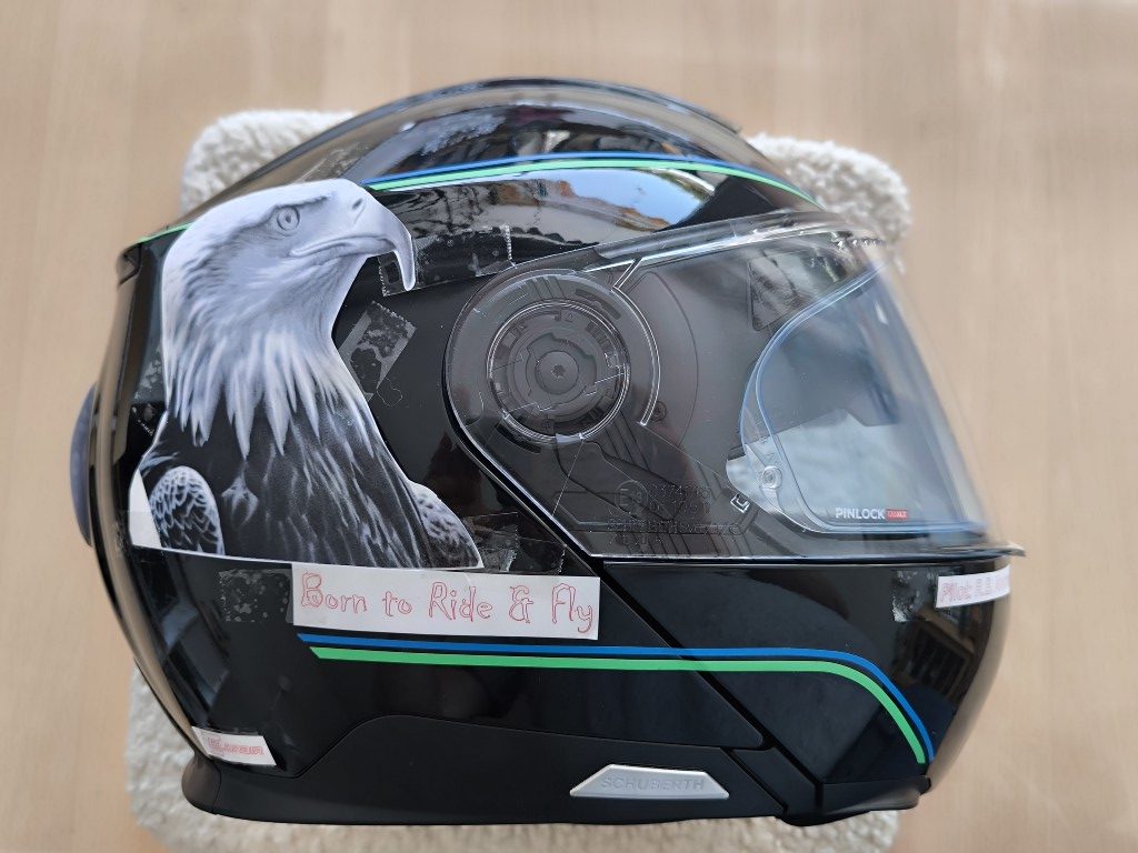 Der neue Schuberth C 5 erhält ein individuelles Design das die beiden Leidenschaften des Eigentümers widerspiegelt.